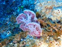 カリフラワーソフトコーラル | ソフトコーラルのウミトサカの仲間です。 日本名はわかりませんが、形状からしてトゲトサカの仲間だと思われます。 その名の通り、カリフラワーの形をしていますが、ピンク色でとても綺麗ですね。 |