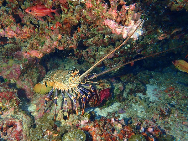 アカイセエビ | ここでも見ることができました。今度は斜め前からの姿です。 |